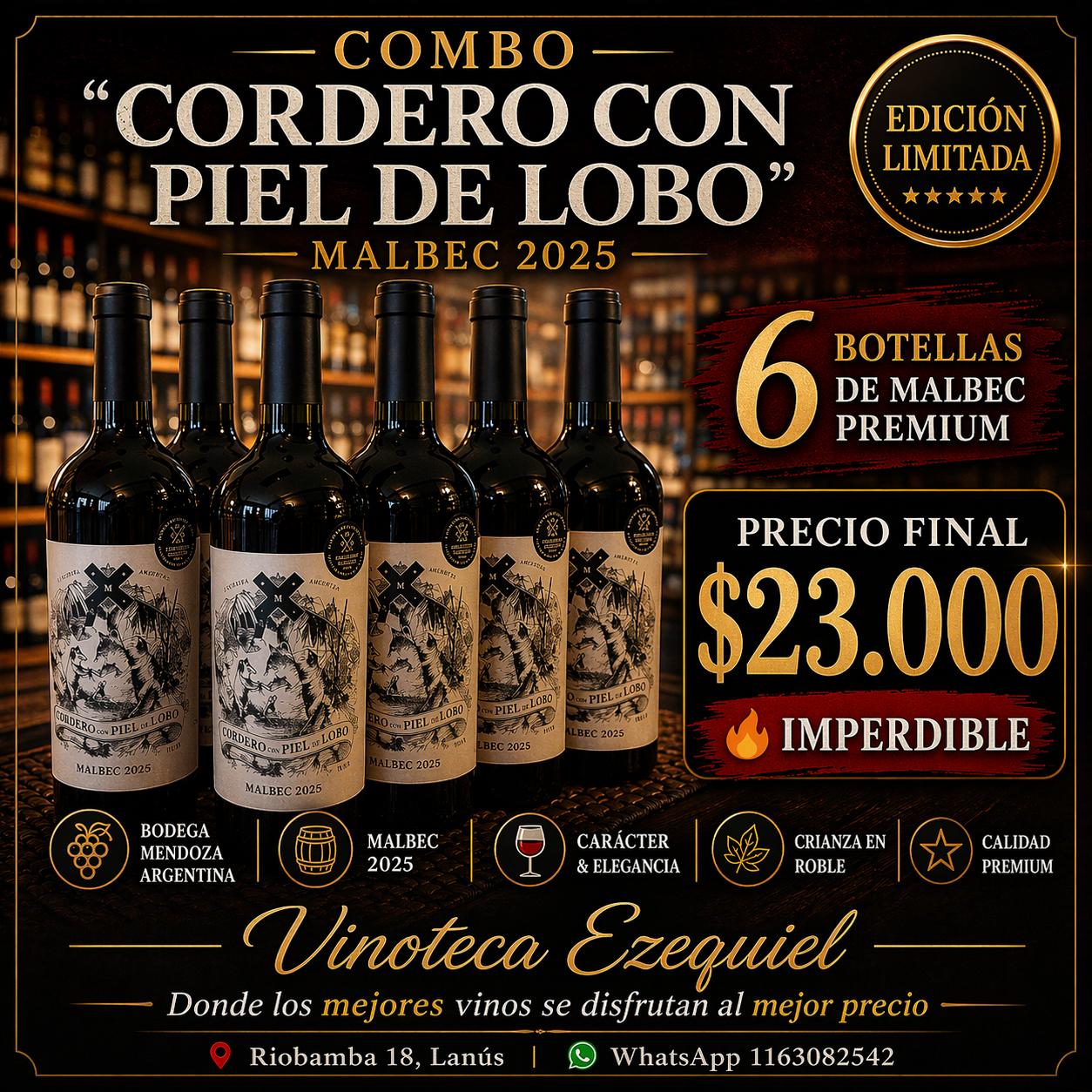 COMBO CORDERO CON PIEL DE LOBO MALBEC